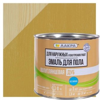 Друг вариант е акрилен полу-гланцов емайл. Смята се за доста устойчив на различни негативни влияния отвън. Освен това, може да се използва за покриване както на дървени, така и на бетонни подове. Тази смес може да се нарече универсална, освен това тя няма неприятна миризма и бързо изсъхва. Продуктът е чудесен за саниране на подове в жилищни сгради..