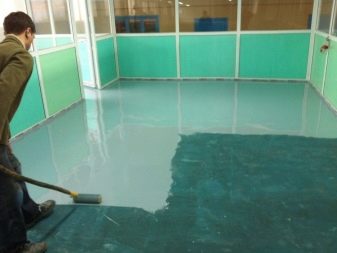 - Най -добре е подовете да се боядисват с пулверизатор или специален валяк, което е удобно за равномерно разпределение на състава по повърхността..