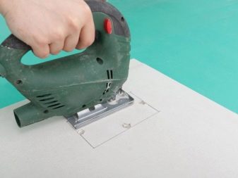 За рязане на гипсокартон се използват листове мозайката. С негова помощ можете да създадете къдрава филия на листа. Например, за създаване на таван с декоративни форми.