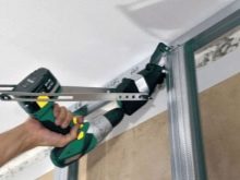 - С метален профил. Рейки се използва за създаване на рамката на бъдещата структура. Основата на профилите се сглобява в зависимост от изискванията на потребителя. Рамката може да бъде под формата на обикновена кутия или сложна многостепенна структура. След създаването на метален скелет, към него са прикрепени листове от гипсокартон. Този метод изисква специална точност; всеки детайл трябва да бъде внимателно измерен и равномерно прикрепен един към друг. Ако възникнат изкривявания, продуктът от гипсокартон ще изглежда небрежен.