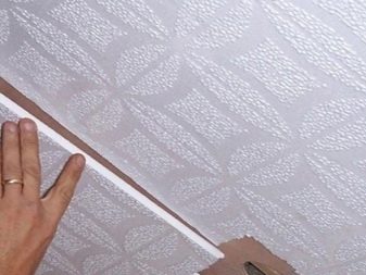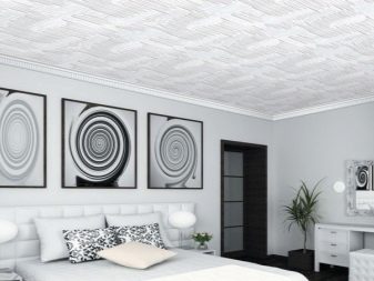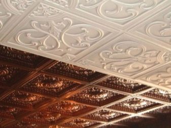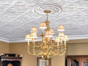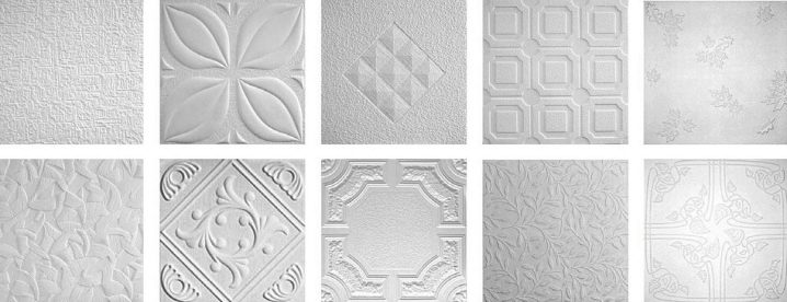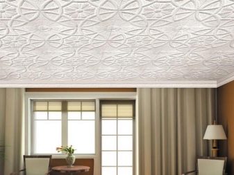 Има и напълно плоски плочи, но по -често производителят ги украсява с един или друг обемен орнамент в асортимента. Освен това можете да вземете специални таванни цокли от същия материал и дори розетки, които идеално ще се хармонизират с подобен ремонт..