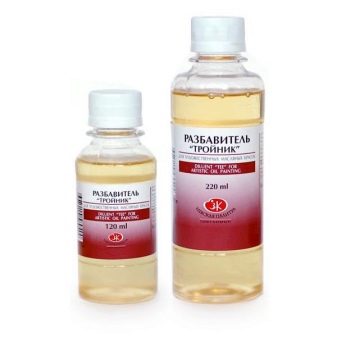 - ZHK – тройник. Съдържа смес от лак, ленено масло и терпентин. Придава лъскав вид на картината, прави я по -богата и поддържа нейната цялост в продължение на много години. Недостатъкът на тройника е, че маслото има склонност да премахва боята с течение на времето, така че някои майстори умишлено купуват двойно, за да избегнат този проблем, или сами приготвят тройника у дома.