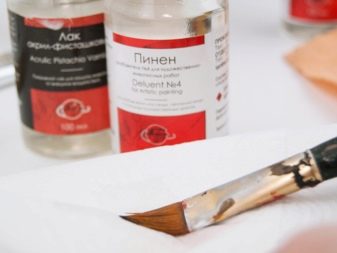 - ZHK – разредител No 4 пинен. За разлика от терпентина, след който картините пожълтяват, той няма такова неприятно свойство. Той е добре съвместим както с бои, така и с лакове. С изобилието от пинен в работата, картината губи естествения си блясък. Има устойчив мирис на иглолистни дървета, тъй като е направен от естествени продукти.