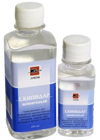 - ZHK – разредител за художествени маслени бои. Той се справя добре с почистването на палитри и четки, въпреки че за тази цел са по -евтини смеси. Фиксира слоевете и също така ускорява процеса на сушене. Запазва блясък, но няма особено приятна миризма, в резултат на което работният процес може да не е толкова приятен.