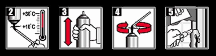 - за начало балонът от пяна се загрява в топла вода до стайна температура, след което се разклаща енергично за 30 секунди. Това ще придаде на полиуретана хомогенно състояние, което ще му позволи да излезе плавно и изцяло от цилиндъра;