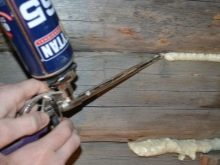 - след напускане на цилиндъра такава пяна се разширява в обем и запълва дори онези микропукнатини, в които е невъзможно да се вкара пистолетната тръба;