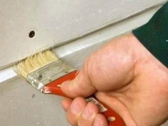 Преди да използвате мазилката, е по -добре да обработите основата с грунд за дълбоко проникване.. Грундът трябва да се нанася равномерно на тънък слой с помощта на валяк или четка. Преди да изберете грунд, не забравяйте да проучите неговия състав, той трябва да е подходящ за гипсокартон. След това шевовете трябва да бъдат залепени със специална армираща лента..