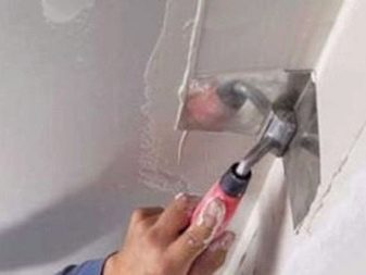 - Сместа винаги се изравнява внимателно. След нанасяне върху стената и втвърдяване ще бъде доста проблематично да се направи шлайфане. Това ще повреди гипсокартона..
