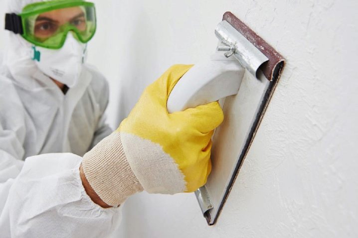 - След като стените са обработени с груб материал, те трябва да бъдат шлифовани с шкурка или специален строителен поплавък, след което третираната повърхност се избърсва с влажна гъба или парцал..