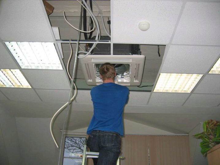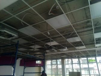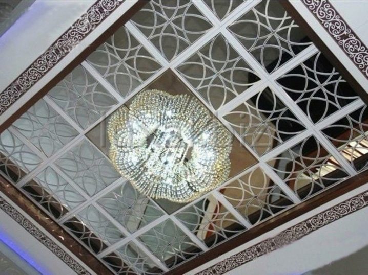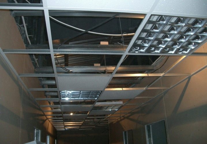 - Клетки. Целият таван е разделен на квадрати или правоъгълници, които са покрити с плочи отзад..