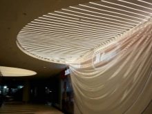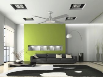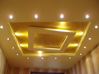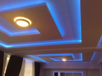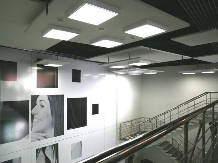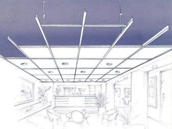 - окачените тавани включват използването на различни осветителни устройства, като растерни лампи, прожектори, LED системи, полилеи;