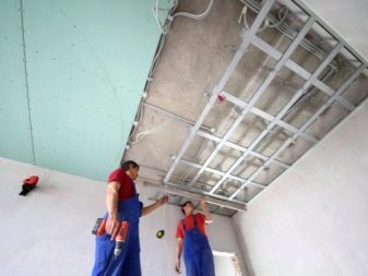 Първото нещо, което трябва да направите, е да намерите помощник. Много е трудно сами да фиксирате листове от гипсокартон, имате нужда от предпазна мрежа. По-добре е да започнете с обикновен таван на едно ниво, за предпочитане малка площ.