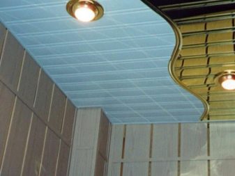 - Пластмасови панели. Изработени са от поликарбонат. Огледалната повърхност на пластмасовите тавани е отличен заместител на стъклени панели. Такъв таван е лесен за монтаж, устойчив на влага, устойчив на механични натоварвания, лесен за почистване..