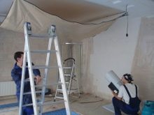 - скрийте дефектите и недостатъците на основата. Това е важно при извършване на ремонтни дейности в стари сгради, където таваните, като правило, са измазани. С течение на времето финишният слой се напука и дори може да падне на някои места. Този вид покритие трябва да се разбие напълно и разтворът да се нанесе отново;