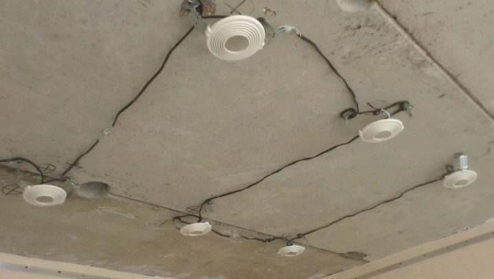 - Полагане на комуникации. Преди да започнете да монтирате рамката, трябва да извършите цялата работа, свързана с електрическото окабеляване. Например, ако е известно, че осветителното устройство ще бъде голямо, тогава мястото на закрепването му трябва да бъде допълнително укрепено с окачвания..