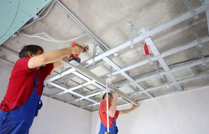 При мазилката от строителите се изисква известен натрупан опит. Този процес не може да се извърши без предварителна подготовка. Но почти всеки може да постави рамката на тавана с минимум инструменти. Основното нещо, което трябва да имате във вашия арсенал: бормашина, мозайката, отвертка и ниво. Трябва да се отбележи, че има вид таван, който изисква вниманието на професионалисти. Това е система за опънат таван. Инсталацията се извършва със специално оборудване, топлинен пистолет. Домашен майстор може самостоятелно да монтира система от окачен таван от гипсокартон, пластмаса, облицовка. А също и за овладяване на таванната конструкция на армстронг.