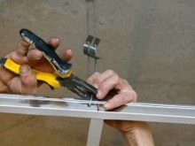 Лагерните профили (3600) се поставят върху ъглите на стената и се закрепват със закачалки. Разстоянието между тях е 1,2 или 0,6 м. Зависи от начертаната диаграма. Цялата работа трябва да се контролира с помощта на ниво. Неподвижните носители трябва да бъдат разположени строго хоризонтално. Куките на окачванията са леко затегнати с клещи, така че носачите да се държат добре. 1200 носача са поставени на стъпки от 60 см. Те се вписват в слотовете на 3600 профила и щракват на място. Някои майстори ги сгъват, но това не е необходимо. Рамката така или иначе ще бъде твърда.