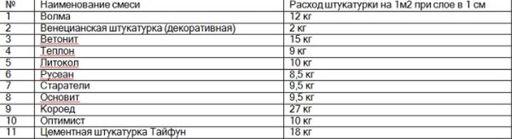 Производителите декларират, че за 1 м² са необходими 1 до 2 кг. Консумацията на опции на базата на кварцови чипове е около 2 кг на 1 м². Масата, базирана на водни дисперсии, се изразходва в района на 2,5 kg на m². Мазилката на базата на мрамор, гранит, малахит е по -икономична (1 кг на m²).