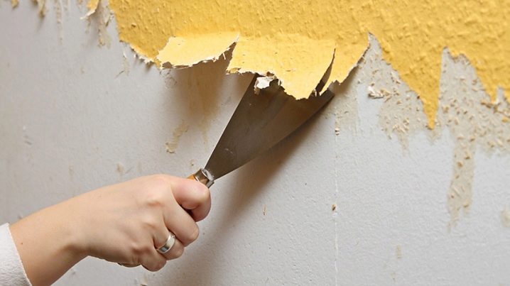 - Премахване на старото покритие. Необходимо е да се премахне старото покритие, да се отстрани боята. Ако премахнете тапета, първо трябва да го накиснете с вода, като използвате спрей бутилка. Това ще намали до минимум количеството прах и ще ви позволи да премахнете големи парчета стари панели. Ако има мазни петна, те не се маскират, а се изстъргват от повърхността. Същото се прави в случай на значително замърсяване..