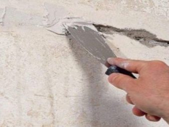 - Маскиране на дефекти. След първична обработка на основата със слой грунд и пълната й полимеризация, върху повърхността се нанася изходен разтвор на консистенция, подобна на заквасена сметана. Те не покриват с него всички стени: задачата на композицията е да маскира чипове, ями и дупки. Слоят от едрозърнест материал не трябва да бъде голям, тъй като това ще загуби издръжливостта.