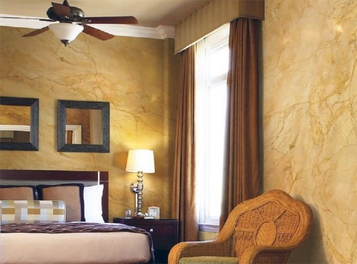 - Този материал се комбинира с други стени и тавани. Венецианската мазилка е съвместима с тапети, стенни панели, стреч фолио, гипсокартон, ламинат, боядисване.