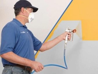 Вторият вариант са пулверизатори или пистолети за пръскане, които са ръчни или електрически. Използвайки такива устройства, ще можете да работите дори на много големи площи. Те също така ще улеснят целия процес и боята лежи идеално равномерно. Характеристика на инструмента – пръскане на състава през специална дюза под високо налягане. Ето защо е необходимо да се използва течна консистенция за устройства.. Дозировката зависи от избрания модел инструмент.