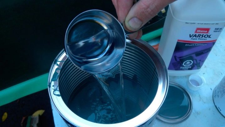 Ще бъде необходимо разреждането на състава, ако условията за съхранение са били нарушени. Това може да се случи, ако отворите консерва и след това я затворите зле. След известно време целият изсушен материал ще стане неизползваем. Но понякога може да се възстанови. За да направите това, трябва да използвате специални разтворители, за които ще говорим по -долу.. Можете също да разтворите боята с PVA лепило. Но това е доста скъп начин.