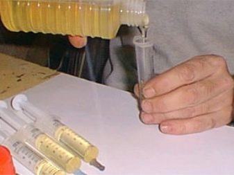 Необходимо е да се измери съставките в необходимите количества. У дома е много удобно да се прави това в медицински спринцовки, тъй като те имат завършени оценки. В допълнение, спринцовката ще ви позволи да извършите процедурата точно и да вземете дори малки количества вещества в необходимата доза. Не е необходимо да поставяте иглата в спринцовката. Смолата и втвърдителят трябва да се изтеглят с отделни спринцовки и да се поставят в отделни контейнери. Ако смолата е твърде гъста, можете да я излеете в спринцовката отгоре, след като извадите буталото и затворите чучура. След това и двете вещества се смесват старателно, за да се получат хомогенни маси..