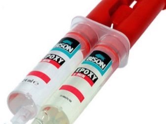 - Най-често епоксидното лепило е двукомпонентно. Продава се в комплект, който включва две тръби. Едната тръба съдържа смола под формата на паста, а другата съдържа течен или прахообразен втвърдител. Съдържанието на двете епруветки се смесва и използва веднага, тъй като след известно време сместа губи своите адхезивни свойства. Повечето производители произвеждат само двукомпонентно лепило. Приложението му е почти универсално.
