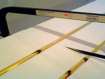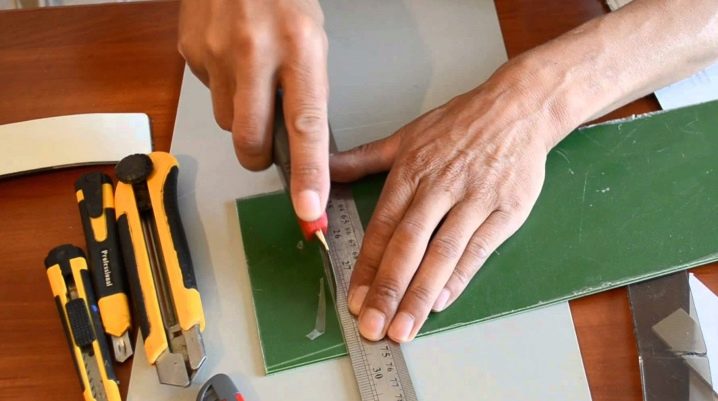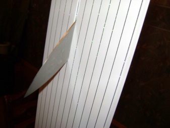 Ножът за канцеларски материали се счита за по -подходящ инструмент за това., тъй като с него материалът не е изрязан напълно. След изтегляне по предната повърхност на материала се получава жлеб. Обръщайки шината и натискайки ръбовете, PVC панелът ясно се откъсва по нея, а получената малка ресни, която покрива повърхността на фрактурата, абсолютно няма да навреди по никакъв начин на външния вид на помещението, тъй като във всеки случай тя ще бъде скрита или под бордюрите, или под перваза.