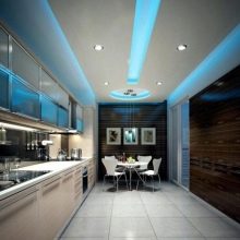 - LED лампа. По-икономичен и дълготраен вариант за този тип таван. Тяхната яркост понякога надминава тази на луминесцентните продукти. Периодът на експлоатация на LED лампите достига 72 000 часа производство, с конвенционалната лампа само 1000 часа.