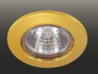 - Монтаж с два пина – такова закрепване е присъщо на халогенните лампи, те се държат от два метални водача. За подмяна е необходимо да отключите фиксатора – като държите лампата с една ръка, а с другата в този момент огънете задържащия пръстен. След това изваждат крушка и поставят работеща. След характерно щракване, ключалката е фиксирана. За тази процедура окаченият таван не е необходимо да се разглобява, задържащата конструкция на осветителното тяло не излиза от отвора..