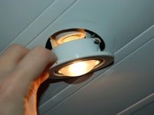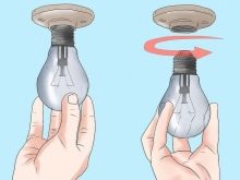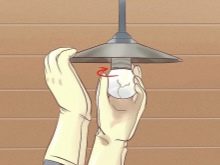 Преди да смените този тип лампи, първо, ако е необходимо, свалете капака или рамката. След това, като държа патрона, развивам крушката обратно на часовниковата стрелка.