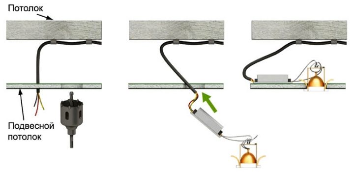 - необходимо е предварително да се запознаете с техническите данни и характеристиките на използването на определени видове източници на светлина за окачен таван.