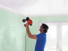 - В случай, че таванът вече е покрит с боя и повърхността има малки фрагменти от лющене на материала, не се отчайвайте, слоят от водно-дисперсионната боя не изисква пълно отстраняване. В такава ситуация е достатъчно да почистите ексфолираните участъци и да нанесете оцветяващия състав върху старото покритие..