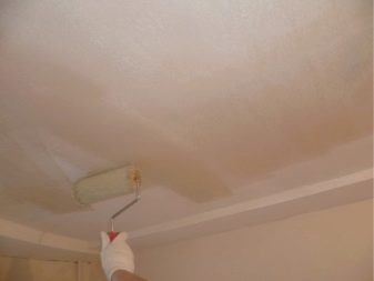 При повторно боядисване на тавана е по-добре да използвате същия цвят или да го затворите на сянка, в противен случай ще трябва да нанесете голям брой слоеве, за да боядисвате напълно предишното покритие и да постигнете желания резултат.