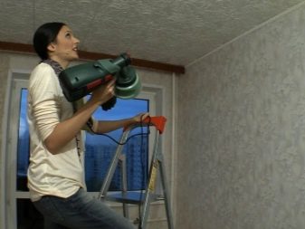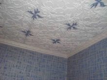 - почистване на повърхността от старото покритие. Наложително е да се премахне подуването на стара боя или беленената варовик с шпатула и след това да се измие таванът;