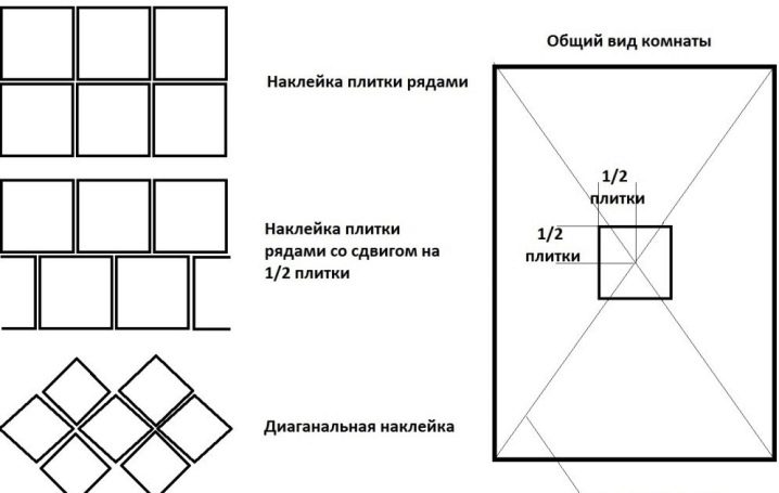 Има две основни възможности за облицоване на таванната повърхност: успоредни и диагонални. При паралелния метод плочките се полагат на квадрат от центъра, успоредно на стените. С диагоналния метод – от центъра по диагонал под ъгъл от 45 градуса.