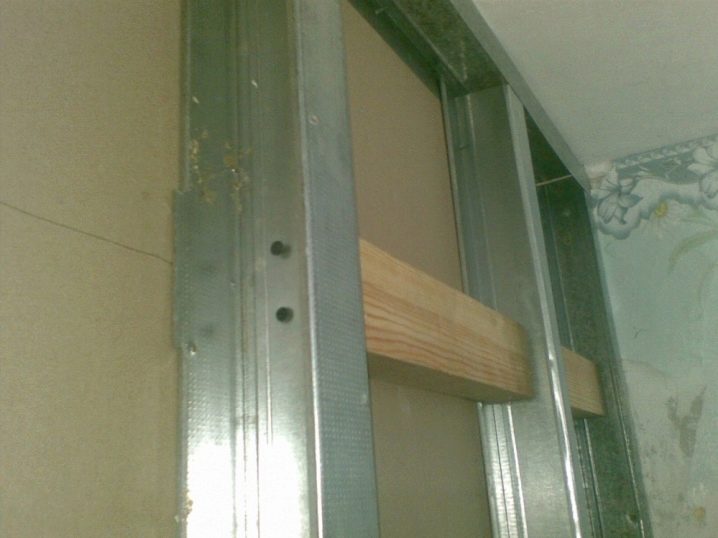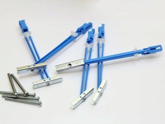 Като предварително определите местоположението на артикула, можете правилно да поставите ипотеките. Пръчките са монтирани по такъв начин, че всяка страна да се вкара в профила. Това дава възможност да се увеличи твърдостта на конструкцията. Краищата на профилите могат да бъдат разгънати, ако е необходимо, по-късно те могат да бъдат закрепени със самонарезни винтове. Ипотеките се закрепват с дюбели за пеперуди, потъвайки главите на винтовете в дъската. Може да се използва котва с потайна глава.