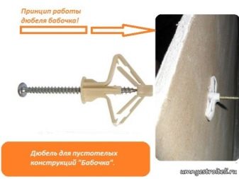 Увеличава силата и дюбел “пеперуда”. Ако стената е обшита с един слой материал, такъв монтаж ще издържи тегло до 10 кг. Може да се използва за закрепване на малък рафт или лампа към гипсокартона. Както и в предишния случай, стабилността на крепежния елемент се увеличава с помощта на няколко разположени дюбели..