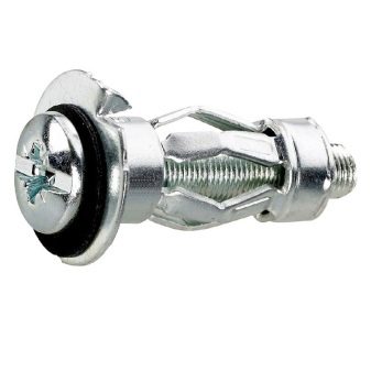 Дюбелът Molly ви позволява да прикрепите дори големи кухненски шкафове към стена от гипсокартон. Това е метален хардуер с винт, който има странични слотове. Инсталира се със специални клещи. В гипсокартона е необходимо да се направи дупка, съответстваща на диаметъра на дюбела, и след това да се постави стойката, огъвайки крилата и завъртайки винта.