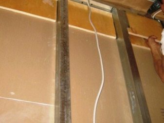 Като предварително определите местоположението на артикула, можете правилно да поставите ипотеките. Пръчките са монтирани по такъв начин, че всяка страна да се вкара в профила. Това дава възможност да се увеличи твърдостта на конструкцията. Краищата на профилите могат да бъдат разгънати, ако е необходимо, по-късно те могат да бъдат закрепени със самонарезни винтове. Ипотеките се закрепват с дюбели за пеперуди, потъвайки главите на винтовете в дъската. Може да се използва котва с потайна глава.