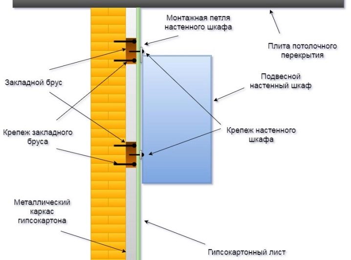 Този метод е подходящ и за доста тежки предмети, като мивка или шкаф. Но конструкции с тегло над 100 кг са прикрепени изключително към стени, обвити в два или три слоя.