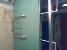 Релсите за кърпи са прикрепени към стената от гипсокартон чрез армировка с профили. Тук ще ви е необходима предварителна маркировка. Поради самонарезния винт, завит в профила, оборудването ще бъде фиксирано на стената и няма да създава излишно натоварване на облицовката.
