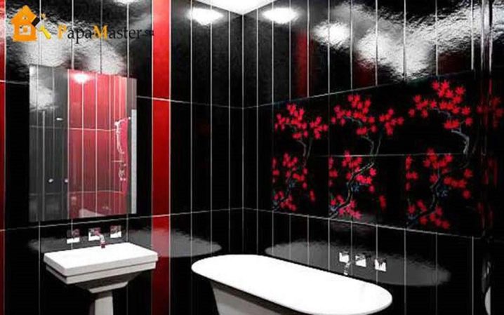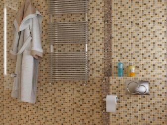 В този случай изберете безшевни видове продукти, така че влагата да не попадне в структурата, като по този начин предотвратите появата на мухъл и плесен. В банята могат да се използват облицовани с плочки панели в комбинация с естествен камък. За голяма стая е възможно да се използват листови продукти, които имитират мозайка.