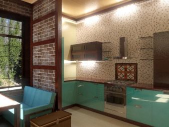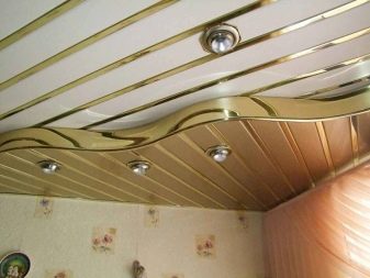 Обикновено собствениците използват PVC облицовки в тази стая на онези места, които са обект на постоянно замърсяване (над мивката и мивката). Тук също е подходящо да се използва зониране. По този начин можете да подчертаете трапезарията в стаята. Ако кухненският модул е направен в светли нюанси, можете да използвате ярки нюанси на довършителния продукт, за да разредите скуката в интериора. Когато декорирате тавана с PVC панели, можете да инсталирате вградени прожектори или осветление.