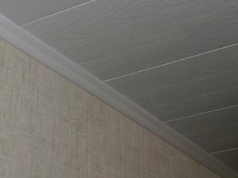 Следващите елементи се сглобяват по метода „вдлъбнатинка“. В този случай панелите трябва да се закачат възможно най -плътно. В края на обвивката се образува фуга между повърхността на стената и пода, която трябва да бъде затворена с цокъл. За запечатване на фугите на тавана се използва по -декоративен тавански цокъл, който трябва да е в хармония с цялостното покритие на тавана.