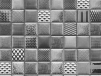 Материалът за плочки е подобен на външен вид на керамичните плочки. Стандартните размери на този продукт са 30х30 см, 98х98 см, 100 х 100 см. Дебелината им може да бъде от 1 до 5 мм. Панелите с плочки могат да се използват в комбинация с обикновени варианти на плочки, които имитират естествен камък.