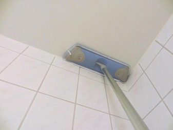 В стая с нормална височина на тавана има смисъл да не се използва стълба или маса, а да се вземе телескопичен моп. Предимството на такъв инструмент е възможността за почистване на плочки в ъглите, первази на тавана и други труднодостъпни места..
