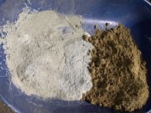 - Изсипете получения материал в контейнера, където е сухата смес..